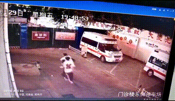10月29日晚上7点44分左右,一对青年情侣刚走到郑州人民医院院内预检分诊处,其中的女孩就突然晕倒在地,男生在多次尝试抱起女孩均未成功。