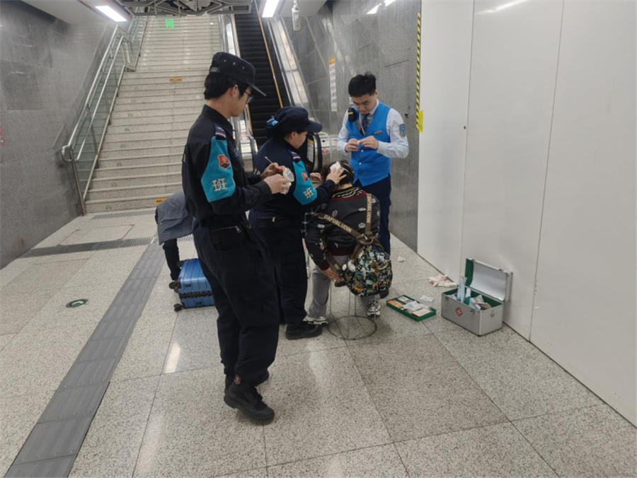 5月8日,队员陈宇腾巡视看到乘客从电梯摔落,冲上前去按下急停按钮并上报,疏散围观、关注伤情,配合车控室妥善处置。冷静应对意外,守住公共出行安全线,折射安保人的敏锐与担当。