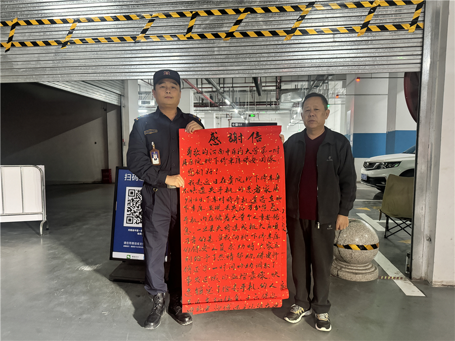 9月16日,一位车主手机在医院停车场遗失被别人捡到后关机。停队员田新建积极协调,调取监控,电话联系未果后通过相貌寻得此人,并协助索回,获手写表扬信。追根寻物不放弃,用耐心与执着去守护。