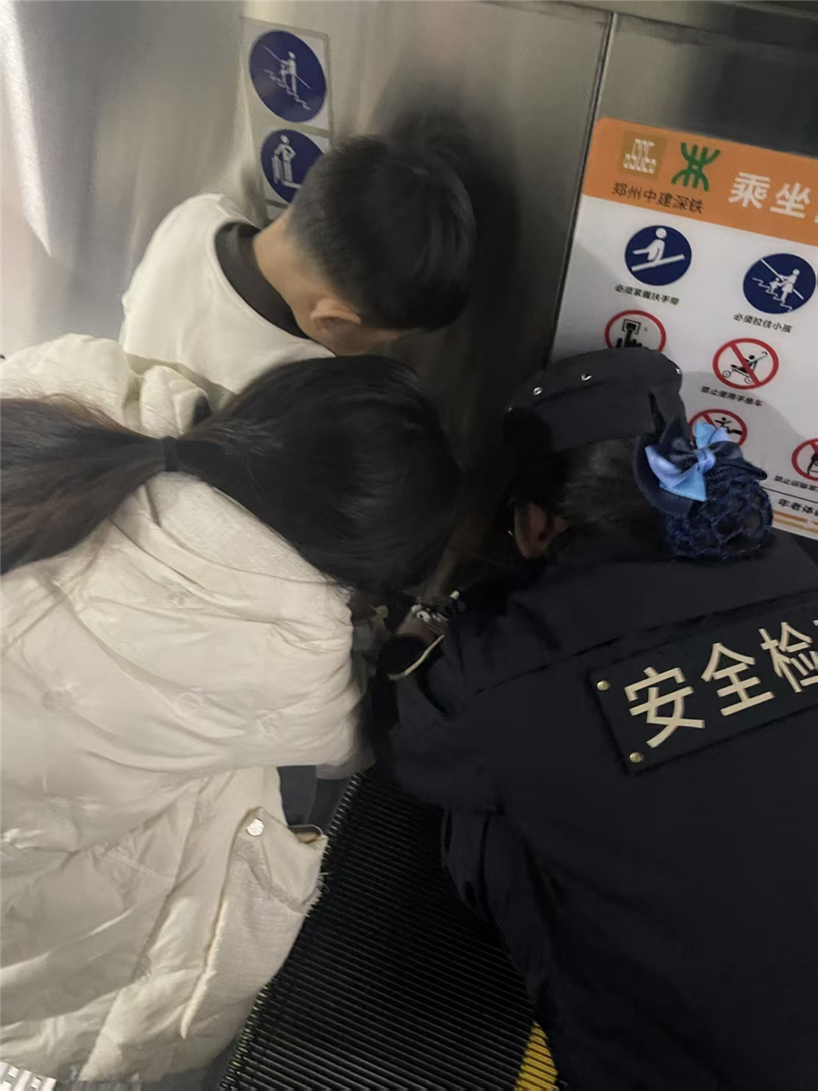 12月9日,3号线东十里铺站乘客儿童裤脚不慎卷入扶梯,安检班长韩康聪飞奔按下急停按钮,上报并征得家长同意后裁剪解困。果断处置化险为安,让安全在分秒间落地。