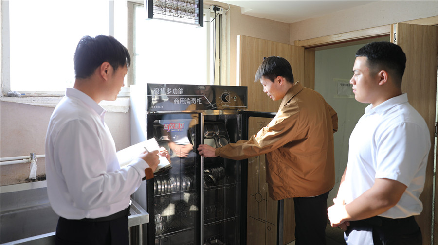 在3号线保障基地,运营部联合后勤部在后厨开展全面检查,重点核查食材采购及入库台账、餐具消毒记录、食品留样情况等,同时对后厨用电安全、灭火器状态等进行排查,要求后勤负责人切实落实安全巡查制,确保后厨全链条安全可控。