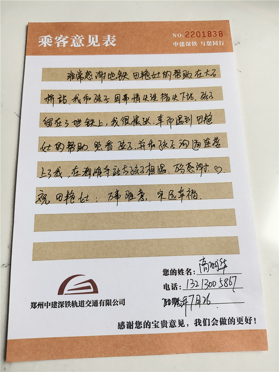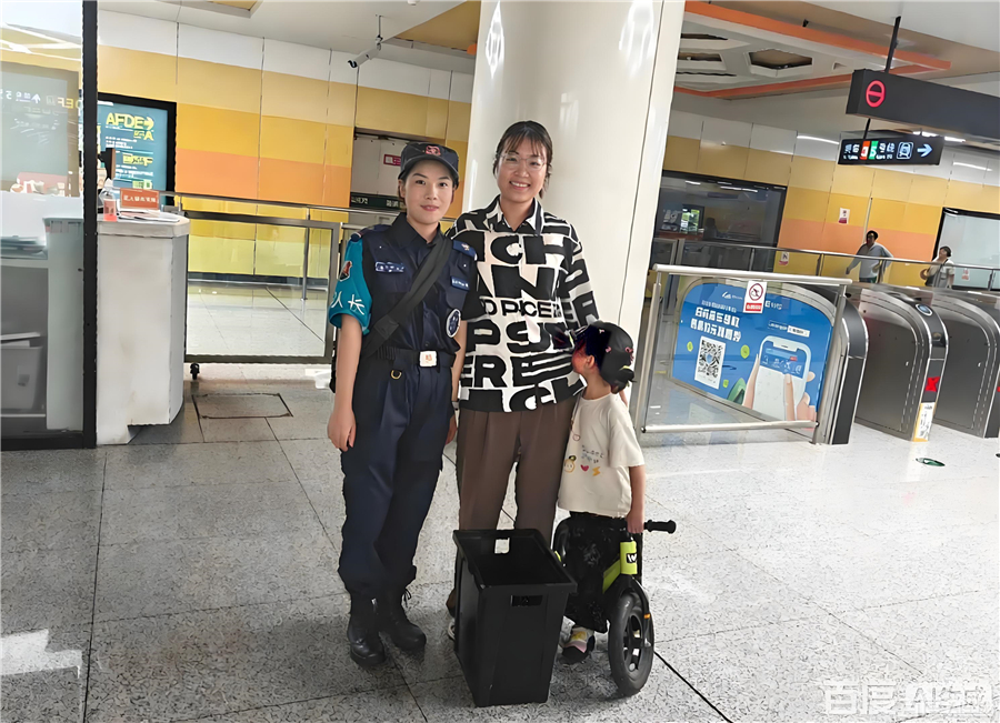 7月26日,3号线队员田艳巡站中在列车上遇到大哭不止的走失幼童,她耐心安抚、积极联系家长,并安全交接。一次跨站守护,让焦急父母重拥孩子,传递了安检人的细致与温度。